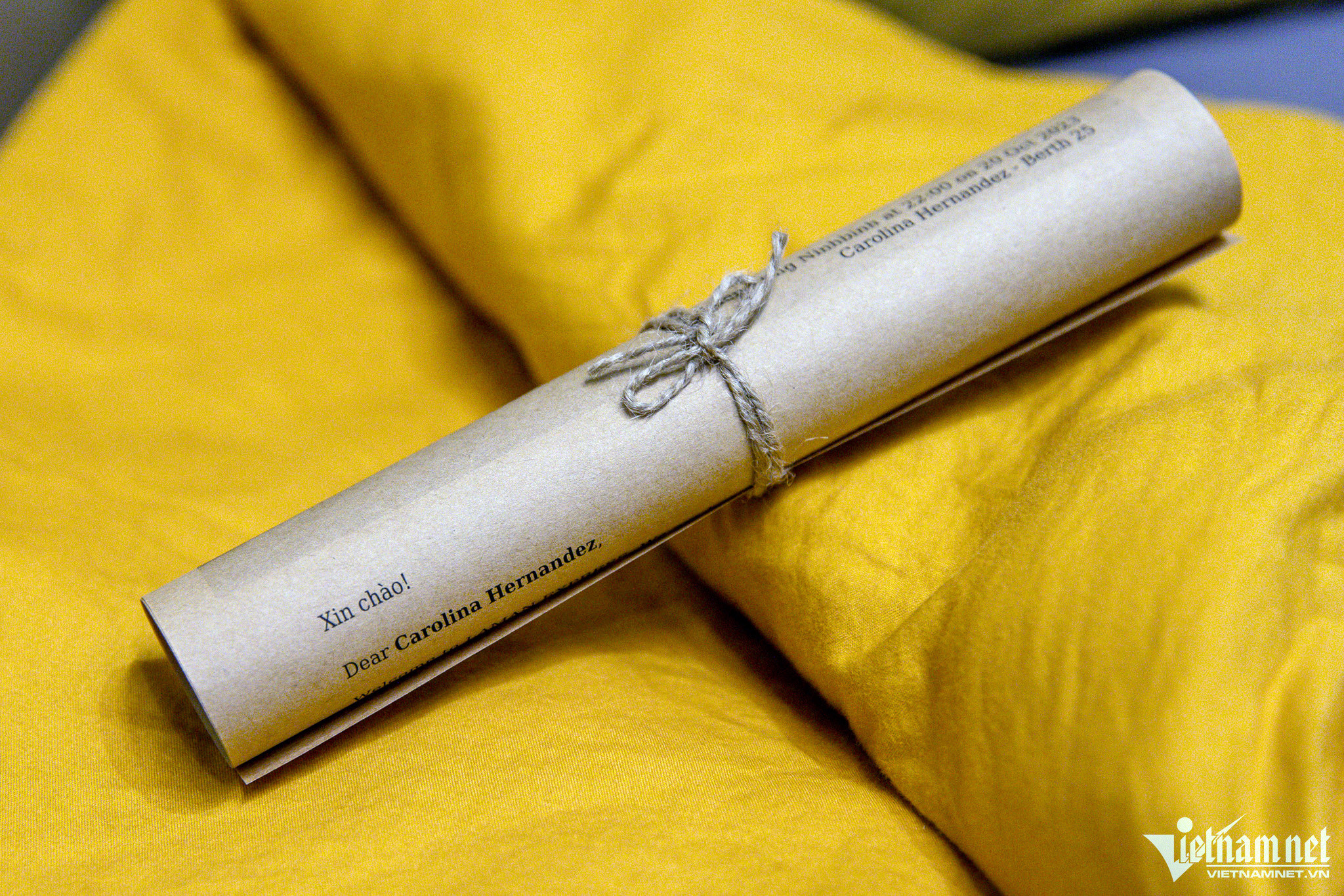 Ở đầu mỗi giường được đặt một lá thư chào, ghi tên khách đã đặt chỗ giống như cách làm ở phòng khách sạn 5 sao.