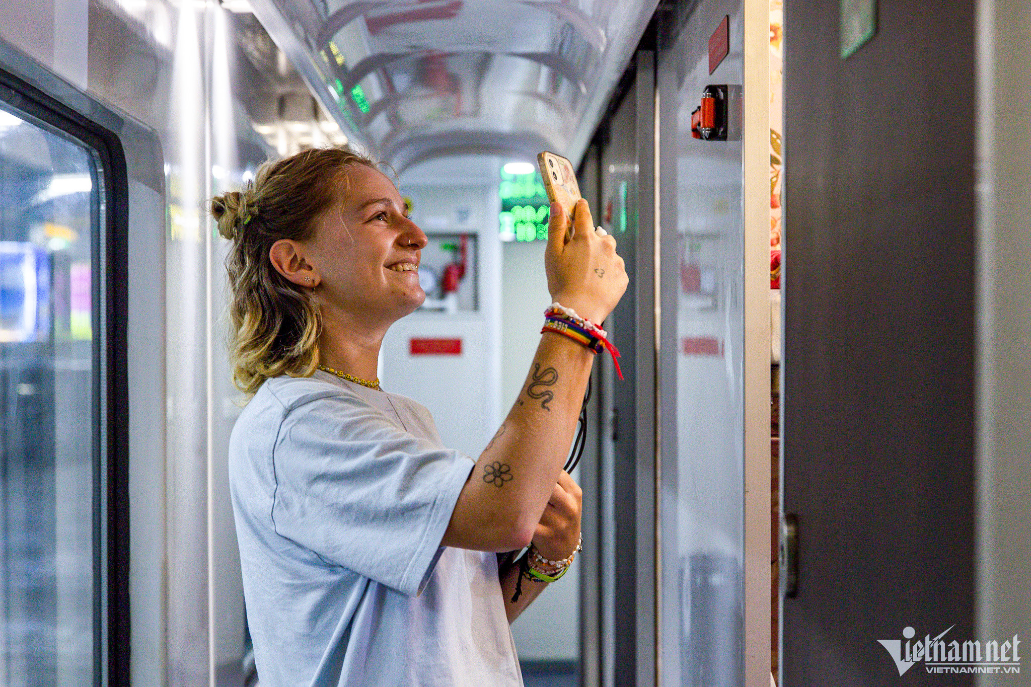 Louisa Reimann (tới từ Đức) thích thú chia sẻ với người thân không gian bên trong cabin. “Ban đầu tôi định đặt vé máy bay vào Đà Nẵng để tiết kiệm thời gian nhưng bây giờ tôi đã cho rằng đây là lựa chọn đúng đắn của mình. Không gian tàu này làm tôi bất ngờ”, Louisa nói.