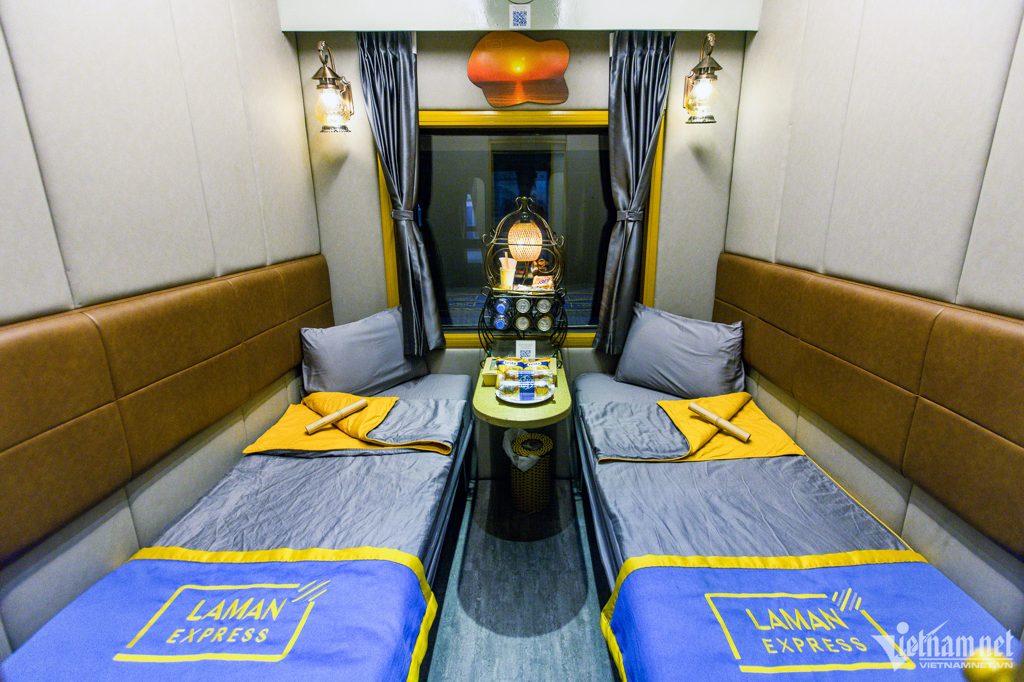 Những khoang 2 giường được thiết kế thêm tấm tựa lưng bọc da, giá vé cao hơn bình thường vài trăm nghìn.