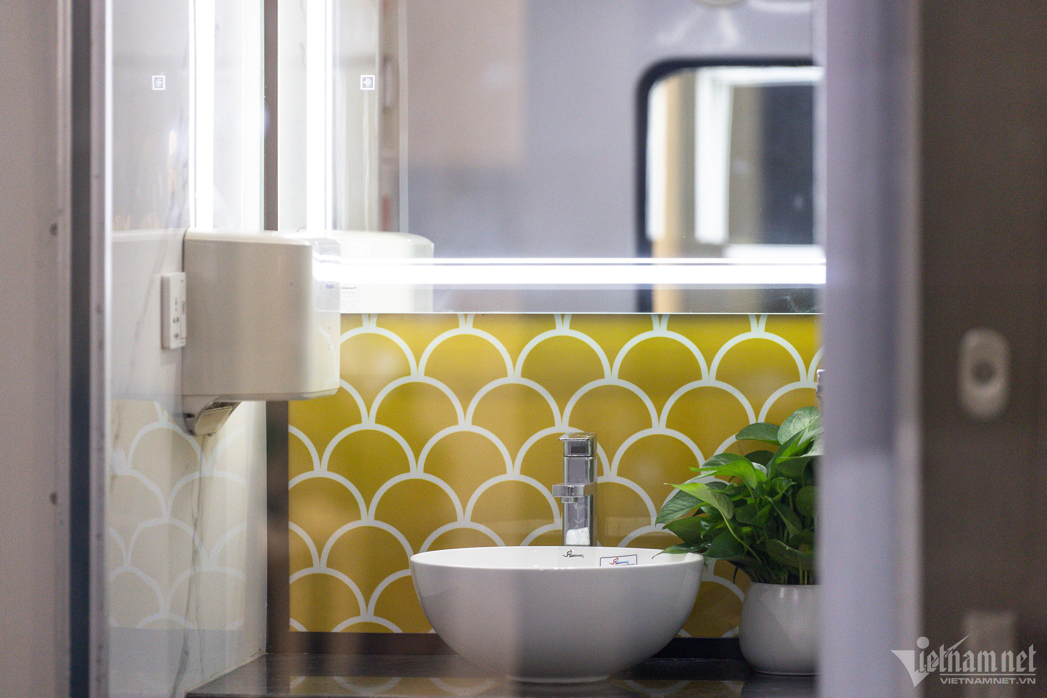 Khu vực vệ sinh được lắp đặt mới bình nước nóng, thiết bị bằng sứ màu trắng sáng. Ngoài ra tàu cũng được áp dụng giải pháp kỹ thuật triệt tiêu mùi hôi từ thùng chứa chất thải, mang lại cảm giác sạch sẽ, sang trọng.