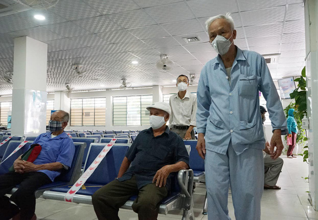 Sau khi qua khu vực khai báo y tế, các bệnh nhân được điều hướng về các khoa khám bệnh, tại đây tất cả người dân đều được bố trí ngồi tại vị trí nhất định, giãn khoảng cách để đảm bảo an toàn.