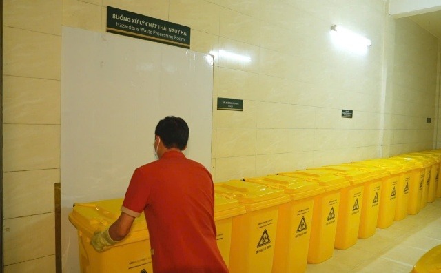 Bà Thư chia sẻ, với nước thải, hiện bệnh viện có hệ thống xử lý chất thải y tế hiện đại, đáp ứng được toàn bộ nguồn nước thải phát sinh. Cùng với đó, các cán bộ công nhân viên thường xuyên được đào tạo tập huấn cả nội dung lý thuyết và thực hành phân loại rác tại nguồn.