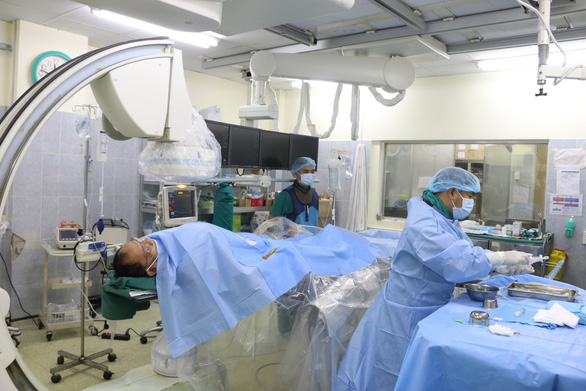 Sau 30 phút nhập viện, bệnh nhân H. được khám, kiểm tra và can thiệp mạch vành cấp cứu. Sau một ngày điều trị nội khoa với thuốc chống đông, giảm đau, huyết áp… bệnh nhân ổn định sức khỏe.