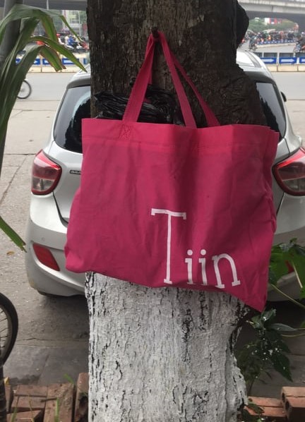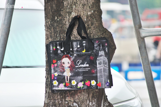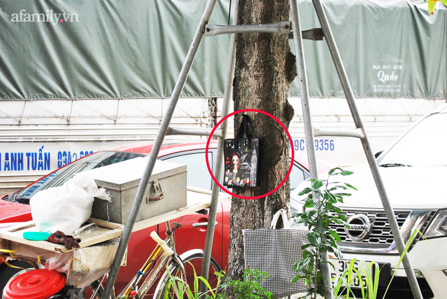 Tại đây, ngay khi vừa thấy chúng tôi ghi hình, người phụ nữ bán hàng nước nhanh nhảu xua tay, đồng thời bà giới thiệu những chiếc túi treo trên cây do một nhóm thanh niên chuyên nhặt xác thai nhi thực hiện.