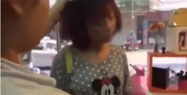 Ngay sau khi kiểm tra túi đồ, người phụ nữ phát hiện ra chiếc đoạn thoại bị mất của mình trong đó thì tỏ ra rất bức xúc quát lớn "Đây là cái gì đây", đồng thời đánh liên tiếp vào mặt cô gái.