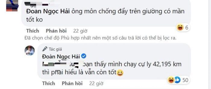 Đáng chú ý, trong đó có một bình luận hỏi sỗ sàng về chuyện "thể thao trên giường" của ông Đoàn Ngọc Hải. Theo đó, người này hỏi rằng: "Ông môn chống đẩy trên giường có làm tốt không?".