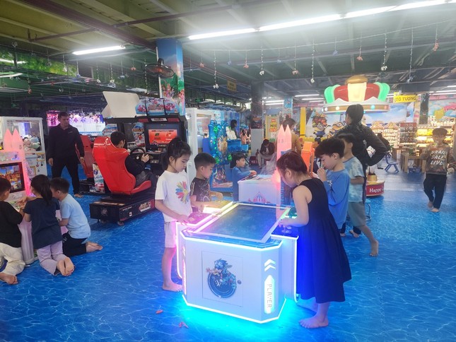 Sáng ngày 16/3, cơ sở này vẫn đón khách vào mua sắm và trẻ em đến vui chơi dù bên ngoài đã đặt biển cảnh báo.