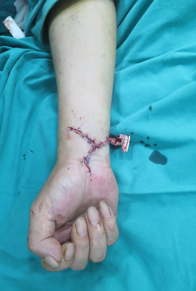 Bệnh nhân là nam (56 tuổi, trú tại Hà Nội), nhập viện chiều 4/8 trong tình trạng vết thương ở cổ tay phải phức tạp, đứt toàn bộ gân cơ cẳng tay trước, hai động mạch quay và trụ cấp máu, hệ thống dây thần kinh chi phối bàn tay. Ngoài ra, bệnh nhân còn nhiều tổn thương khác trên tay trái và chân.