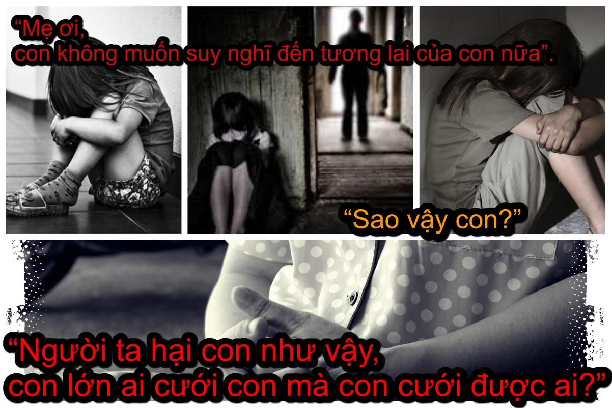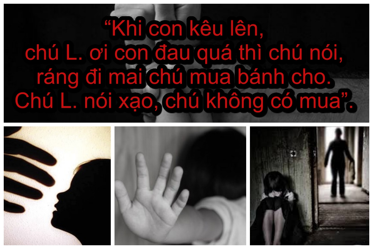 “Có những lúc con bị chú L. làm vậy, con thấy anh K. nhắm một mắt nhìn qua khe cửa. Qua ngày hôm sau, anh K. hỏi con chú L. làm gì vậy, con nói chú L. sờ... Anh K. dặn về nhà nói mẹ đi, đừng để người ta làm như vậy”, bé Nh. hồn nhiên kể với tôi như thế. Bé đâu biết những lời của con trẻ như ngàn nhát dao đâm vào trái tim người mẹ”, chị T. buồn rầu.