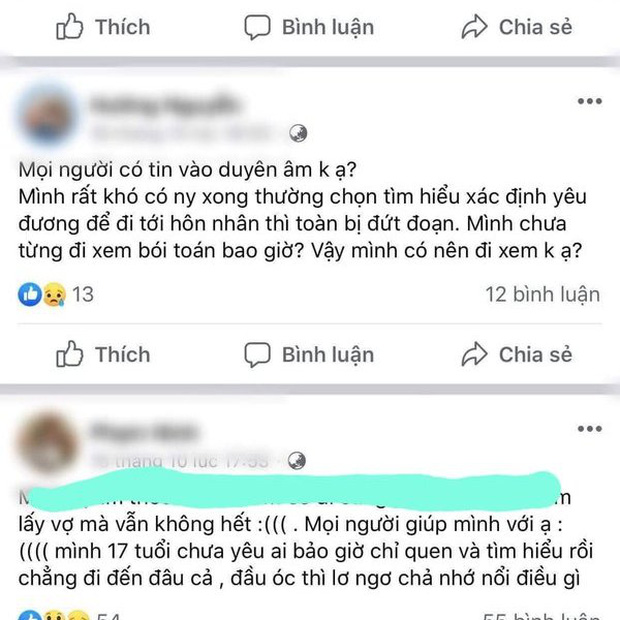 Facebook Nguyễn Thanh N. chia sẻ: "Mình chưa quen ai được quá 5 tháng và chuyện tình yêu của mình với bạn trai cũng hay lục đục, mâu thuẫn. Mình đã đi cắt duyên âm một lần nhưng tình duyên không những không khá khẩm hơn mà mình với bạn trai chia tay luôn sau đó".