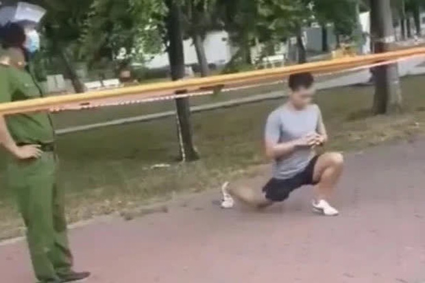 Dù lực lượng chức năng đã đến giải thích và yêu cầu nam thanh niên trên về nhà thực hiện giãn cách xã hội, tuy nhiên, trong cả đoạn video dài hơn 6 phút, người này vẫn không hề có bất cứ phản ứng nào, điềm nhiên hoàn thành bài tập thể dục của mình.