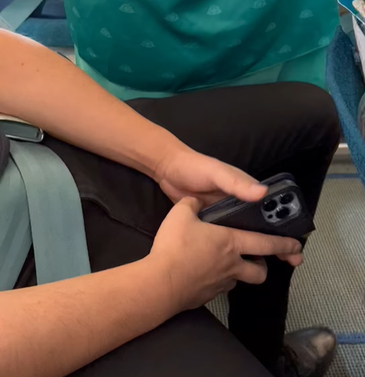 Dẫu vậy, chị từ chối lời đề nghị đổi chỗ của bạn nhân viên. Thay vào đó, chị H. gọi tiếp viên của chuyến bay và trình bày sự việc, đồng thời muốn được kiểm tra điện thoại người đàn ông kia.