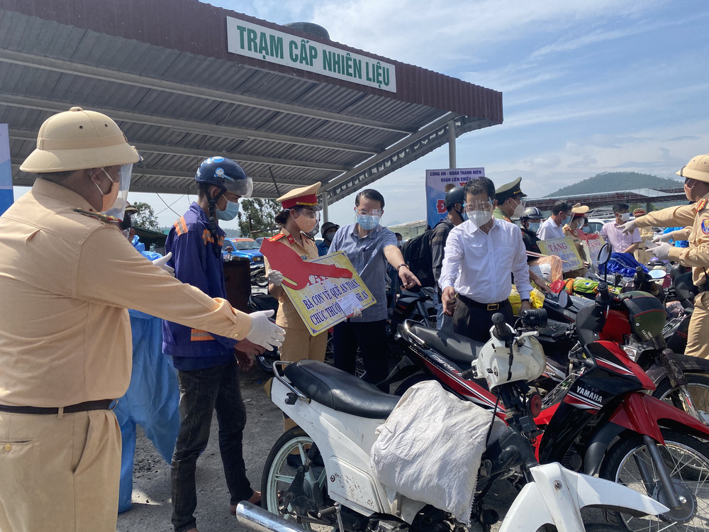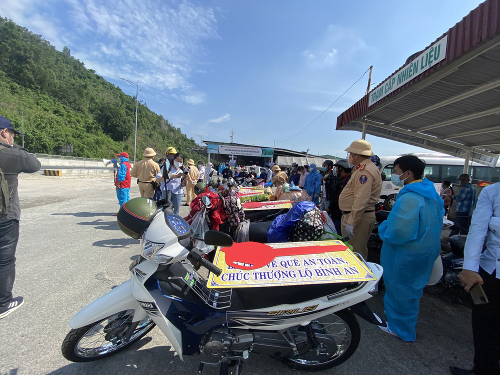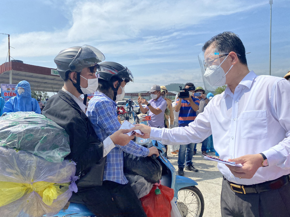 Bí thư Đà Nẵng đứng phát tiền hỗ trợ cho người dân từ các tỉnh miền Nam đang trên đường chạy xe máy về quê đồng thời trao tặng 8 xe máy cho những người có xe đã quá cũ nát.