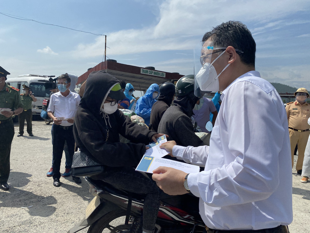 10/10/2021 22:31Bí thư Đà Nẵng đến hầm Hải Vân, phát tiền hỗ trợ cho người dân về quê