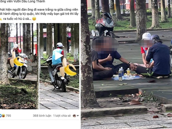 Trước đó, vào chiều 23/8, trên một trang Fanpage với gần 200.000 người theo dõi ở H.Long Thành (Đồng Nai) đăng bài viết kèm theo hình ảnh, nội dung đề cập đến người đàn ông đi xe màu trắng ra giữa công viên vườn dầu Long Thành có hành động lạ kỳ quặc, khi thấy mấy bạn gái trẻ thì lấy chuối (biểu tượng hình trái chuối) ra tuốc vỏ hù ú òa…