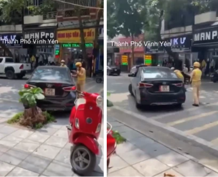 Theo người chia sẻ bài viết, sự việc xảy ra vào sáng 20/9 tại TP Vĩnh Yên, tỉnh Vĩnh Phúc. Theo nội dung đăng tải trong đoạn clip cho thấy, một chiếc xe ô tô màu đen được 2 đồng chí CSGT yêu cầu dừng xe.