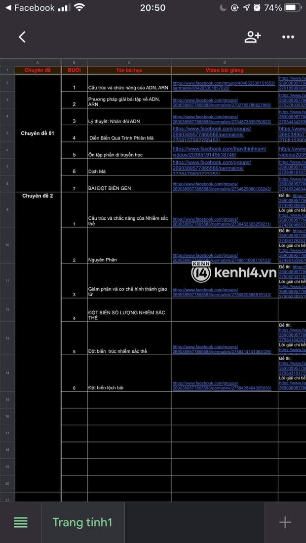 - Ở khóa live trên Facebook: Mình chỉ được add vào 1/6 nhóm chat học tập. Thầy giáo dạy rất ít, tháng 2 dạy được 2 video rồi đến tháng 5 mới tiếp tục dạy được thêm 1 video nữa. Đến mức cuối năm thầy còn chưa live xong chương 1 kiến thức SGK Sinh. Sau khi bị học sinh hối thúc quá nhiều về tiến độ dạy học, chúng mình được add vào nhóm luyện đề thi Đại học chỉ đúng trong 2 tháng cuối. Từng đó thời gian làm sao chúng mình ôn tập kịp cho kỳ thi tốt nghiệp?