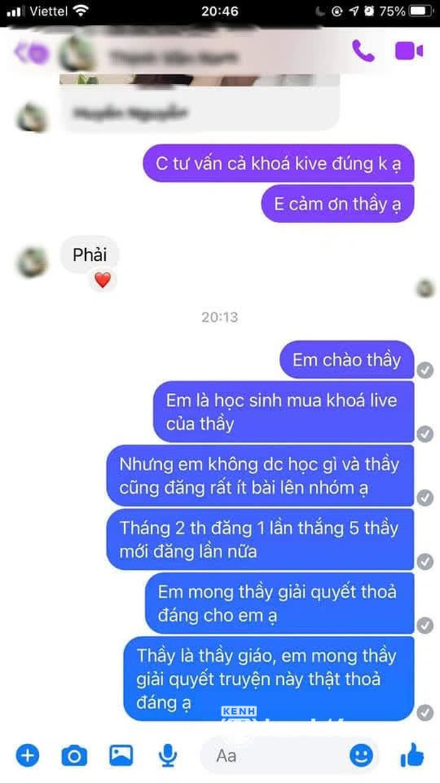 Liên hệ với một trong những học sinh theo học thầy, cô bạn N.T (sống tại TP.HCM) cho hay: "Mình đăng ký combo học chỉ mất 2 triệu do đúng lúc giảm giá. Hồi đầu xem live của thầy khá hào hứng vì chất lượng dạy tốt. Song càng học lâu dần thì thấy có vấn đề.