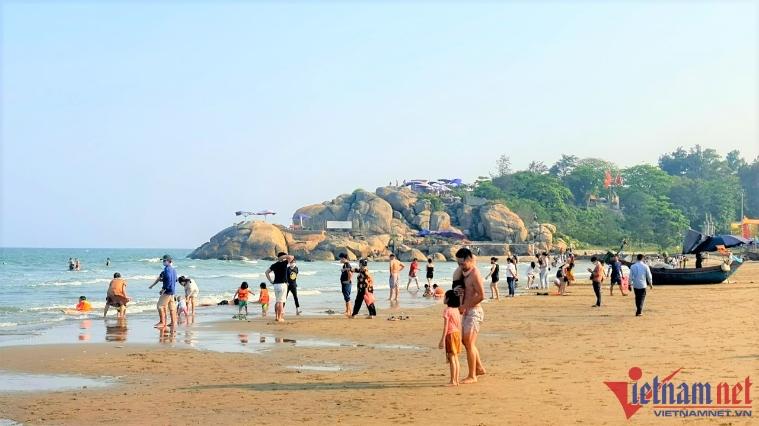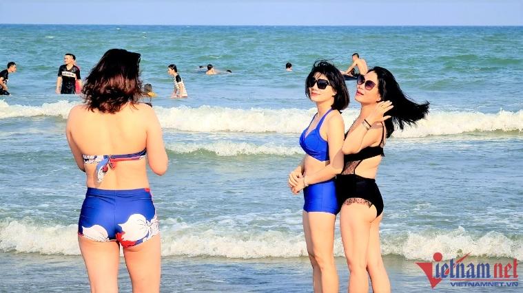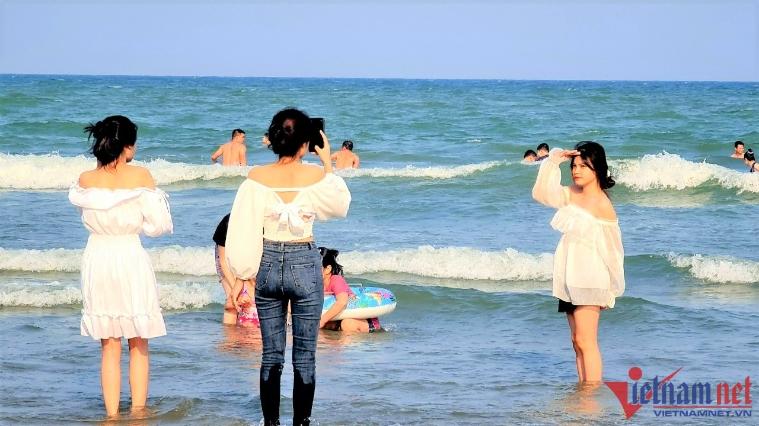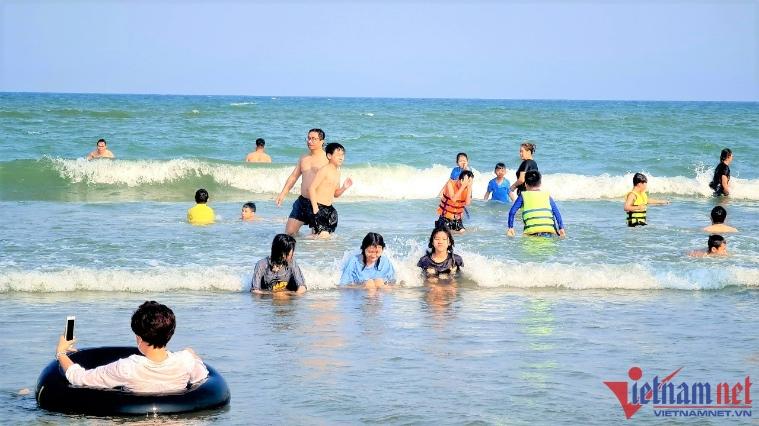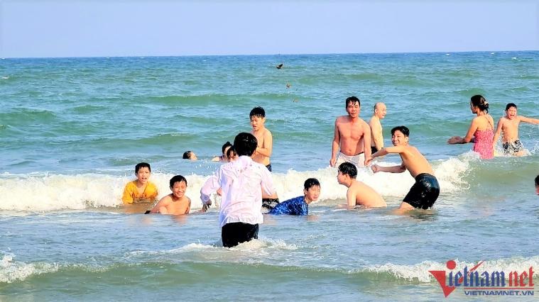 Ghi nhận của VietNamNet, 4h chiều ngày 9/4, tại bãi biển Sầm Sơn hàng nghìn du khách đã ùn ùn xuống biển thỏa sức tắm mát sau một thời gian dài giãn đoạn do dịch Covid-19.