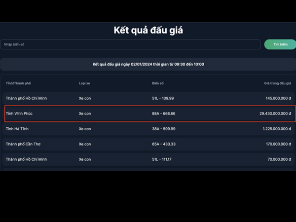 Sáng 2/1, cuộc đấu giá biển số đầu tiên của năm 2024 diễn ra từ 8h và gây bất ngờ ngay từ thời điểm các khung giờ đấu giá thứ nhất trong ngày.