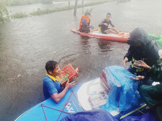 "Một ngày anh em dầm trong mưa to gió lớn, một số đoạn nước chảy xiết, ướt sũng đẫm lạnh, không ít lần lật SUP té nhào nước, cano bị sự cố phải kéo rất vất vả. Nhưng tất cả đều an toàn với những phương án được tính toán kỹ và khảo sát tiền trạm trước đó. Và kết quả thật tuyệt cho đoàn, anh em chúng tôi đưa hàng đến tận những gia đình đã bị cô lập nhiều ngày, những món hàng thiết thực nhất trong lúc này đem lại niềm vui cho cả người cho lẫn người nhận", anh Vinh cho biết.