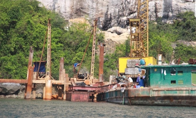 Đơn cử như hai công trình xây dựng bến cập tàu của động Mê Cung và hang Tiên Ông giữa vùng lõi vịnh Hạ Long mới đây. Hoạt động xây dựng diễn ra ngày đêm, hàng nghìn khối bê tông bị đổ xuống vịnh nhưng khi hỏi ra, cả hai công trình đều không có báo cáo đánh giá tác động môi trường.