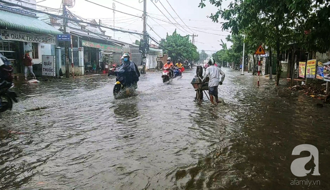 Dù vậy, trên một đoạn đường tại phường An Thạnh (thị xã Thuận An), nước bất ngờ dâng lên rất cao, có chỗ gần liếm đến bánh xe máy. Nước chảy cuồn cuộn kèm với các phương tiện di chuyển đông khiến giao thông tại đây gặp nhiều khó khăn.