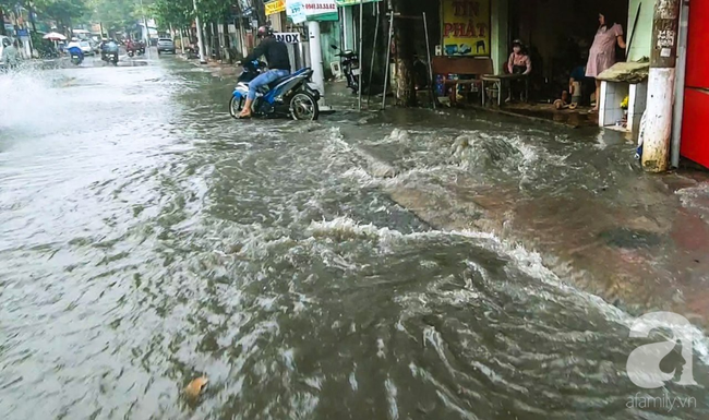 Theo ghi nhận của phóng viên, dòng nước tại khu vực này không trong mùa có một màu đục ngầu. Đồng thời nước chảy rất mạnh thành dòng từ hướng hai bên đường ra. Men theo lề vỉa hè thì phát hiện có khoảng 3-4 miệng cống trào nước lên dữ dội. Một số người dân chạy đến tìm cách khắc phục nhưng bất lực.