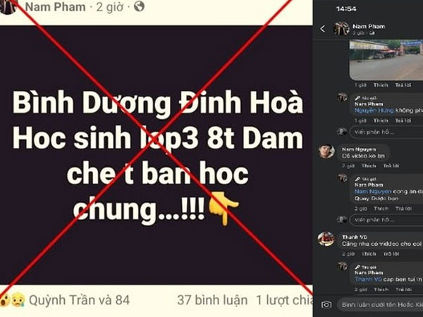 Ngày 29/10, tài khoản mạng xã hội (Facebook) tên “Nam Pham” đã chia sẻ thông tin với nội dung “Bình Dương, Định Hòa một học sinh lớp 3 đâm chết bạn học”. Trong phần bình luận, người này chia sẻ hình ảnh Trường tiểu học Định Hòa 1 (phường Định Hòa, thành phố Thủ Dầu Một, tỉnh Bình Dương) và khẳng định công an đang phong tỏa để điều tra.