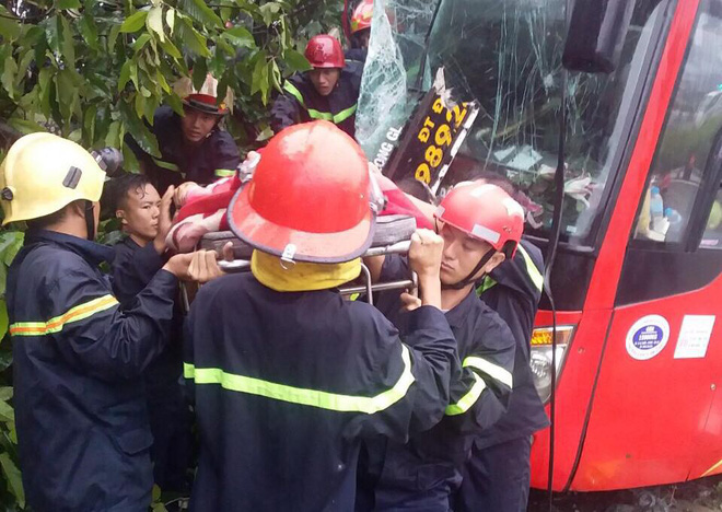 Sau vài phút, lực lượng chức năng đã giải cứu được 39 người mắc kẹt bên trong xe khách ra ngoài. Ghi nhận, có ít nhất 4 người bị thương trong vụ tai nạn, được đưa đi cấp cứu sau đó.