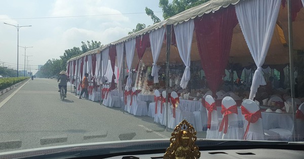 Trưa 25-6, mạng xã hội xôn xao hình ảnh một rạp đám cưới được dựng chiếm tới 2/3 làn đường.