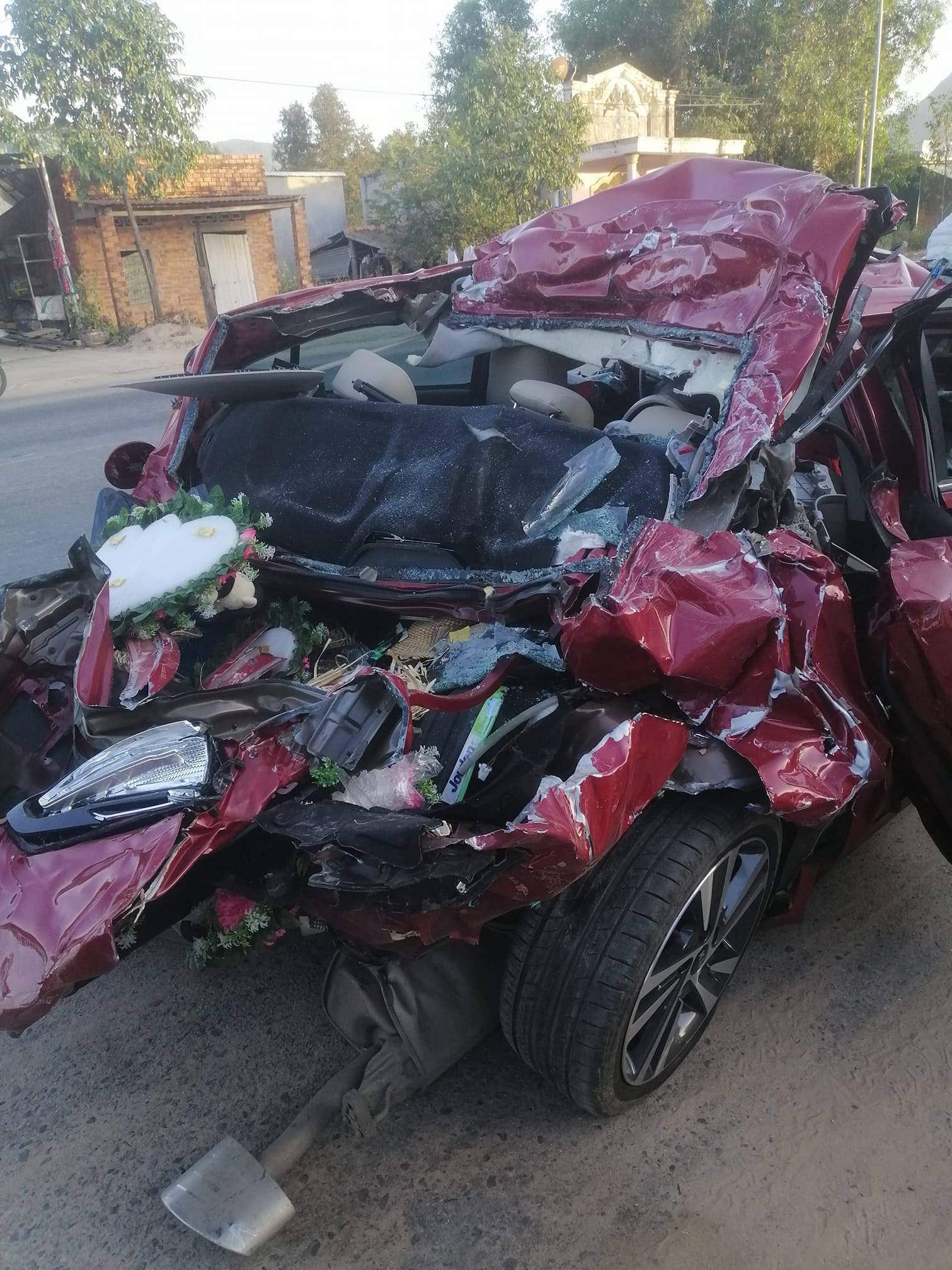 Xe của anh Sơn bị đẩy về phía trước, biến dạng do rúc vào gầm xe tải đang dừng ở ngã tư. Tại thời điểm xảy ra tai nạn xe 86A-086.52 được trang trí làm xe hoa đón dâu chỉ có 1 mình tài xế Trần Thanh Sơn.