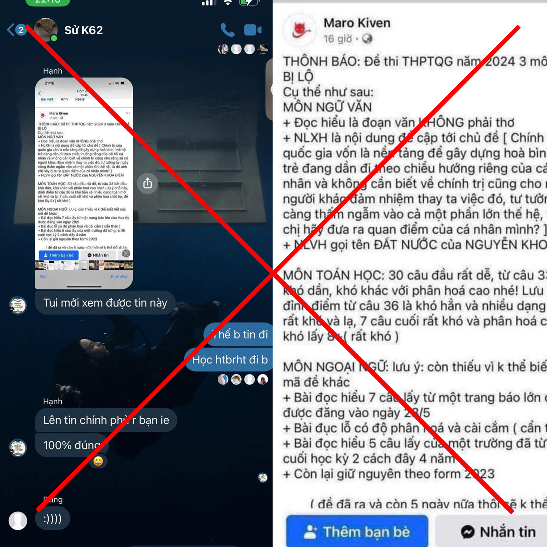 Để tránh gây hoang mang dư luận, làm ảnh hưởng đến tâm lý của các thí sinh tham dự Kỳ thi tốt nghiệp THPT năm 2024, Bộ GD-ĐT cũng đề nghị người dân không chia sẻ những thông tin sai sự thật nêu trên.