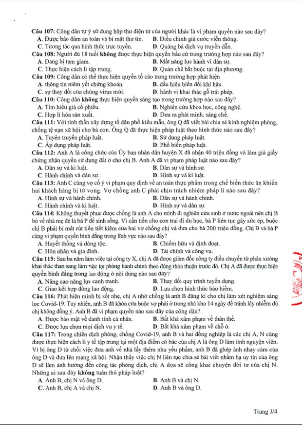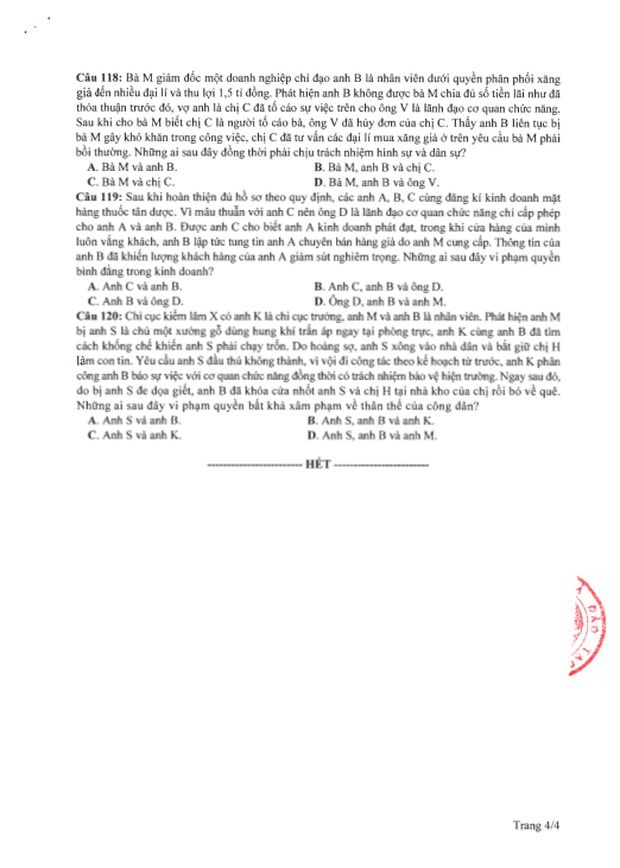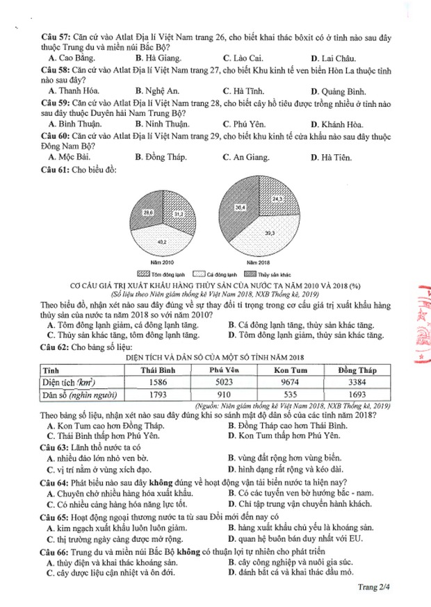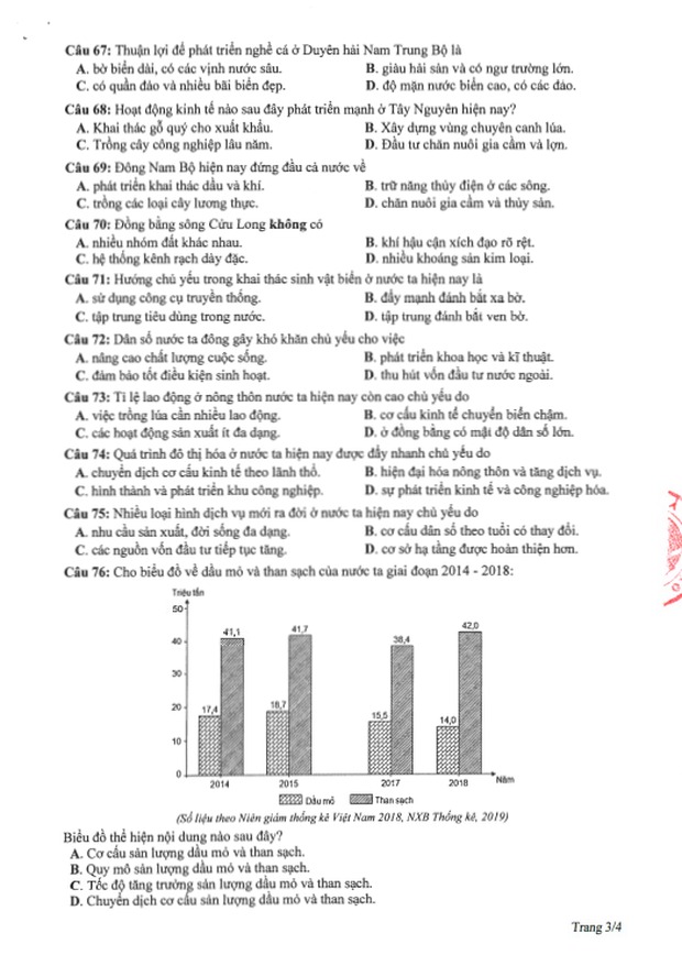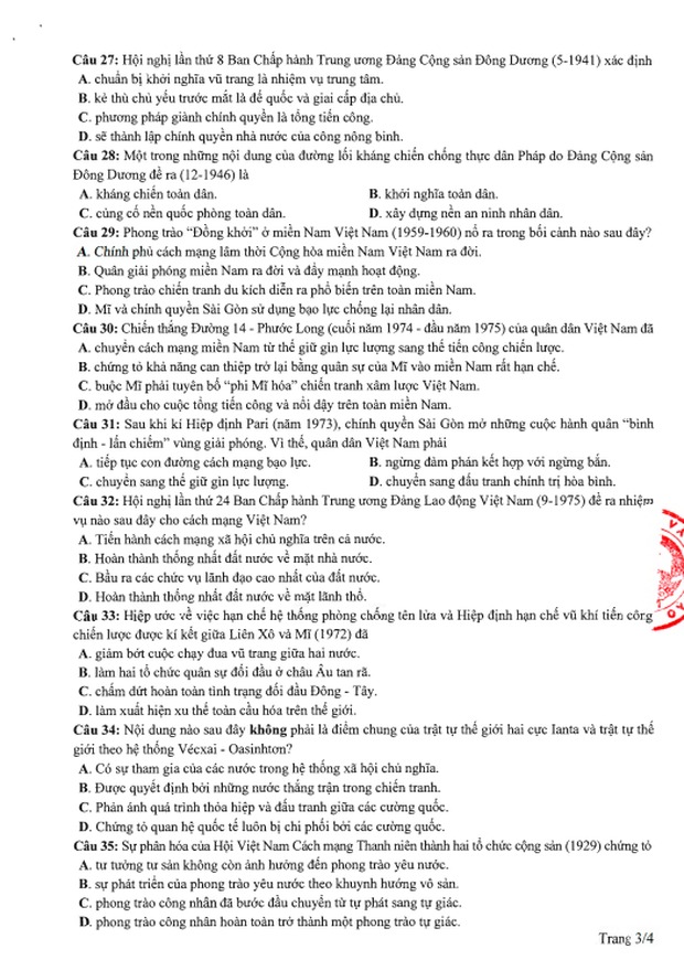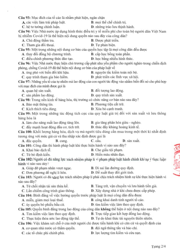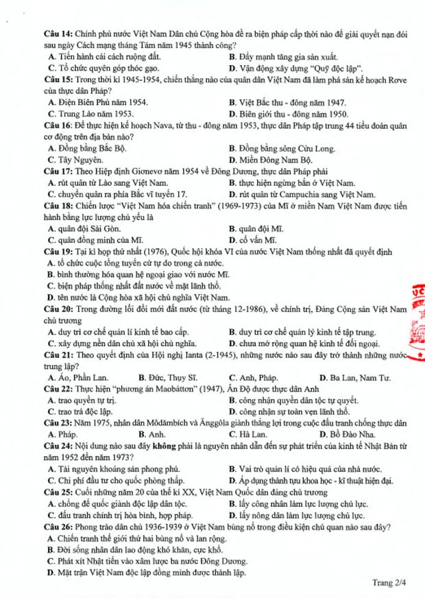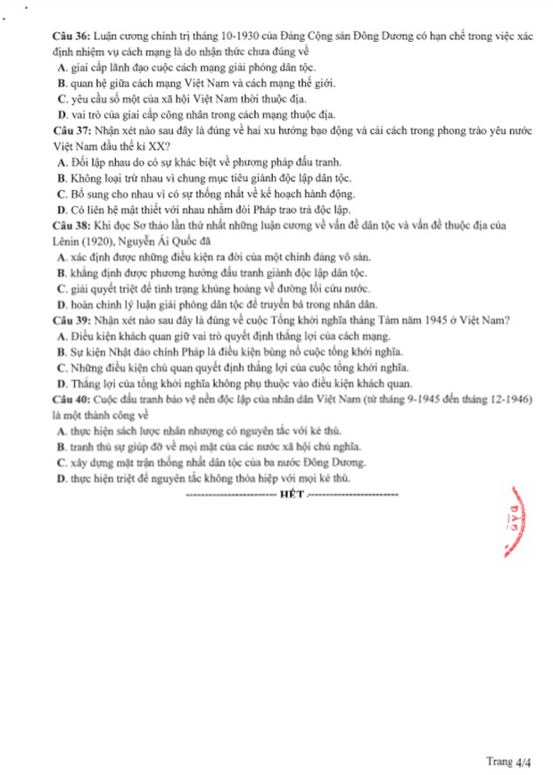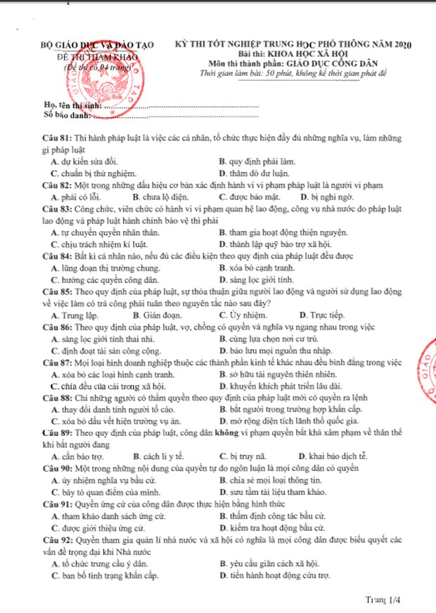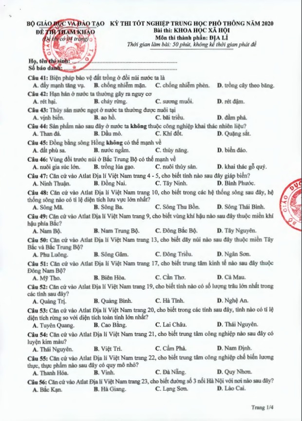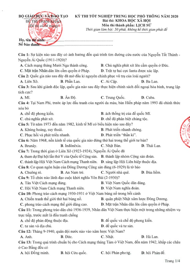 Đề thi tham khảo kỳ thi tốt nghiệp THPT năm 2020 Tổ hợp Khoa học xã hội