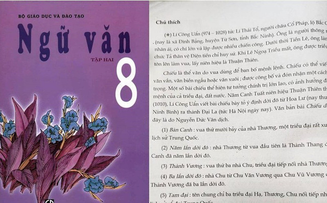 Theo đó, tác giả của "Chiếu dời đô" là Lý Công Uẩn (tức vua Lý Thái Tổ). Tuy nhiên, tất cả các chữ chỉ tên vị vua này trong sách giáo khoa Ngữ văn lớp 8 đều chuyển sang chữ “Lí”: "Lí Công Uẩn", "Lí Thái Tổ"./.