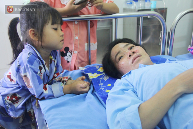 Theo mẹ vào bệnh viện từ lúc chiều tối hôm qua, 2 đứa con gái của chị Linh khóc ngất, cứ sợ bố mẹ xảy ra chuyện không hay. Ngồi nép ở một góc giường bệnh viện, Phạm Thị Thảo My (6 tuổi, con gái út) của chị Linh chốc chốc lại quay sang nhìn mẹ. Thấy khuôn mặt mẹ bị trầy xước, Thảo My sợ hãi, rụt rè thủ thỉ vào tai mẹ. "Con sợ lắm, mẹ không được chết bỏ con lại đâu".