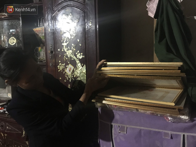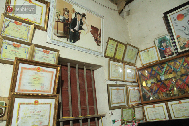 Trong lúc tôi đang chăm chú ngắm nhìn các giải thưởng, ông Chuyền nói với: "Không treo được hết, còn một sấp bằng khen trong tủ kia nữa. Nó còn bảo nó mới mang về một nửa vì không treo được hết, nhà hơi nhỏ", ông cười khoái chí rồi chỉ tay về hướng chiếc tủ nhỏ đã cũ xếp đầy bằng khen mà Oanh đạt được.