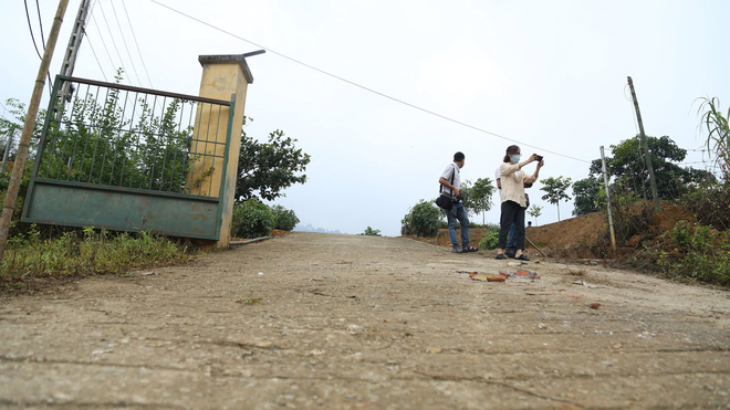 Có mặt tại hiện trường 1 ngày sau khi vụ tai nạn thương tâm xảy ra, cánh cổng sắt đã được đưa đi, trụ cột bê tông và bảng tên trường bằng tôn vẫn nằm tại hiện trường.