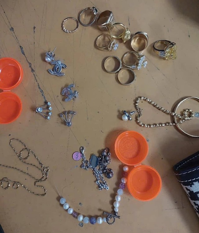 00 giờ 20 sáng 28-1 (29 Tết), chị phát hiện chiếc túi bỏ quên chứa rất nhiều nữ trang: 10 chiếc nhẫn kim loại màu vàng, 2 lắc tay kim loại màu vàng, 3 dây chuyền, khuyên tai và hơn 3,5 triệu đồng bỏ quên trên xe đẩy tại sảnh A, Nhà ga hành khách T1.