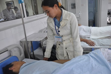 Páo đang được một người chị dâu chăm sóc tại bệnh viện |