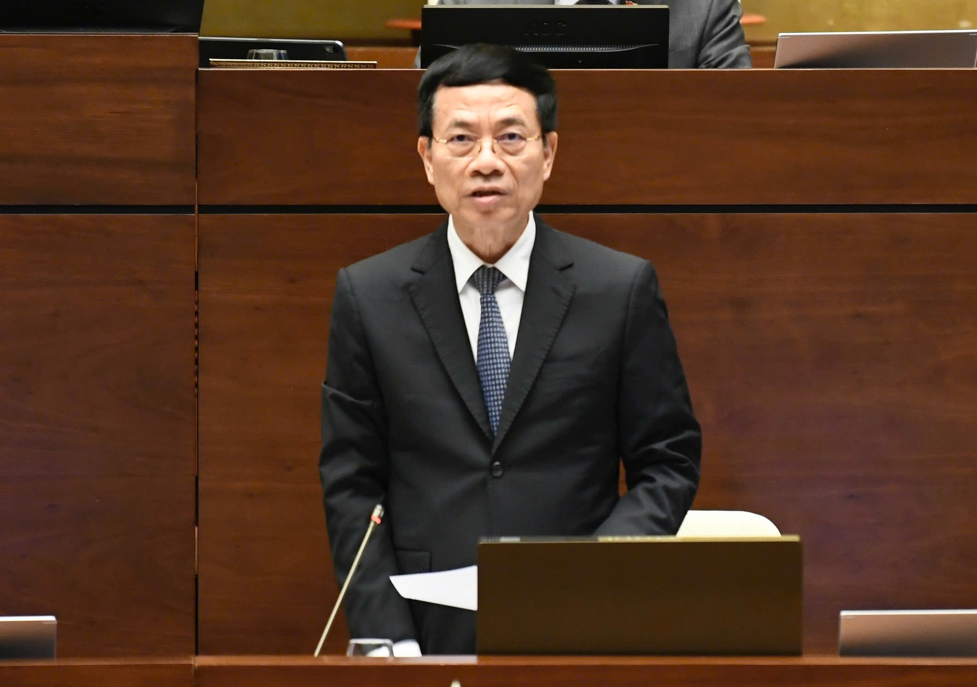 Trả lời đại biểu, Bộ trưởng Nguyễn Mạnh Hùng nhấn mạnh, vấn đề quản lý mạng xã hội, chống tin giả, tin sai sự thật là vấn đề toàn cầu, không chỉ riêng Việt Nam.