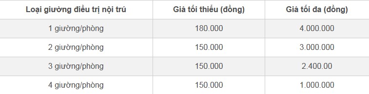 Khung giá giường bệnh theo yêu cầu (chưa bao gồm tiền thuốc và các dịch vụ y tế khác)