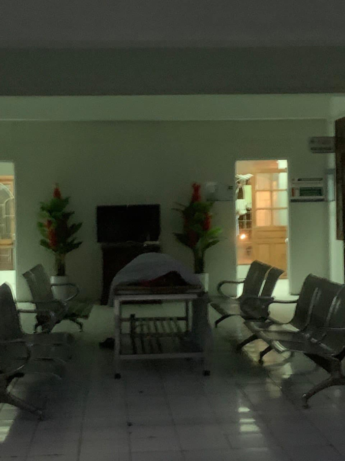 Từ bức ảnh có thể thấy, trong khu vực giữa sảnh của bệnh viện vào ban đêm có đặt một chiếc giường sắt gắn chân để di chuyển bệnh nhân. Sẽ chẳng có gì đáng nói nếu như trên chiếc giường này đang có người nằm và trùm kín trên người miếng vải trắng xoá. Điều này khiến bất cứ ai khi bước đến và chỉ nhìn thoáng qua trong ánh sáng le lói ban đêm đều cảm thấy hoảng sợ.