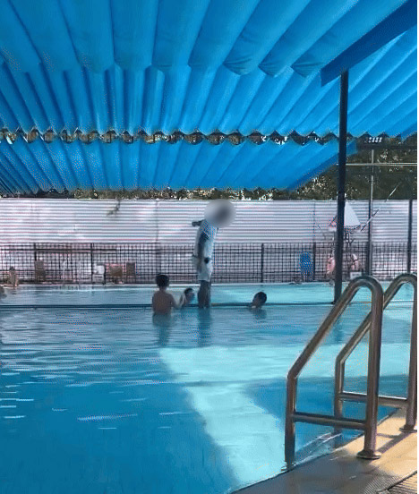 Một người khác có mặt tại bể bơi thời điểm xảy ra sự việc đã dùng điện thoại quay lại diễn biến. Lúc người đàn ông dìm cháu bé xuống nước, người quay clip cũng lên tiếng can ngăn.
