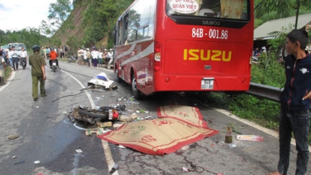 Cú va chạm làm xe tải chở gạch mất lái và tông thẳng vào xe máy mang BKS 86H5-6808 do anh Trần Văn Lao (23 tuổi) trú xã La Dạ, huyện Hàm Thuận Bắc chở theo vợ là chị Lo Thị Hôn (22 tuổi) và con trai Trần Quốc Lâm (3 tuổi) đang chạy cùng chiều phía trước. Vụ tai nạn làm anh Trần Văn Lao cùng vợ và con chết tại chỗ.