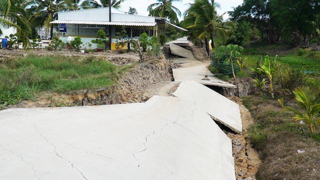 Ghi nhận tại xã Khánh Hưng (huyện Trần Văn Thời) cho thấy, địa bàn xảy ra hơn 80 vị trí sụt lún, sạt lở đất; làm hư hại nhiều tuyến đường liên xã, cầu giao thông được đầu tư hàng tỷ đồng, xe ô tô không thể đi được.