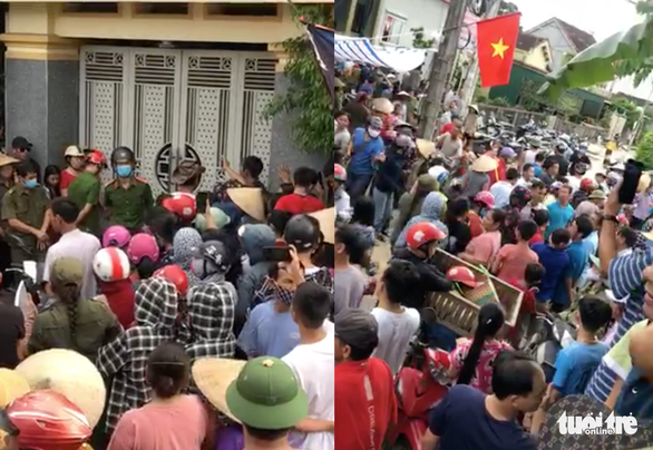 Đến 16h30 chiều 20-8, hàng trăm người dân hiếu kỳ vẫn tập trung trước nhà ông T.Đ.Đ. (nguyên phó trưởng Công an huyện Thanh Chương, Nghệ An, ngụ xã Đồng Văn, huyện Thanh Chương) để xem một gia đình đến đòi nợ ông Đ. Lực lượng công an phải cắt cử lực lượng bảo vệ.