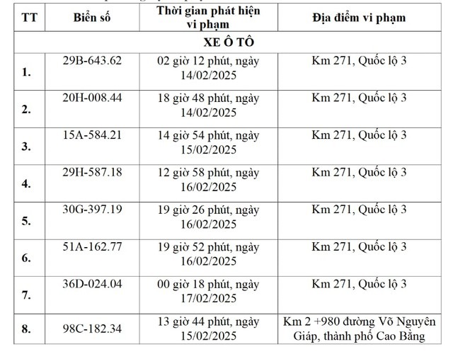Ngày 21/2, Công an tỉnh Cao Bằng đã có thông báo kết quả phát hiện các trường hợp vi phạm giao thông từ ngày 10/2 đến ngày 19/2, qua Hệ thống camera giám sát.