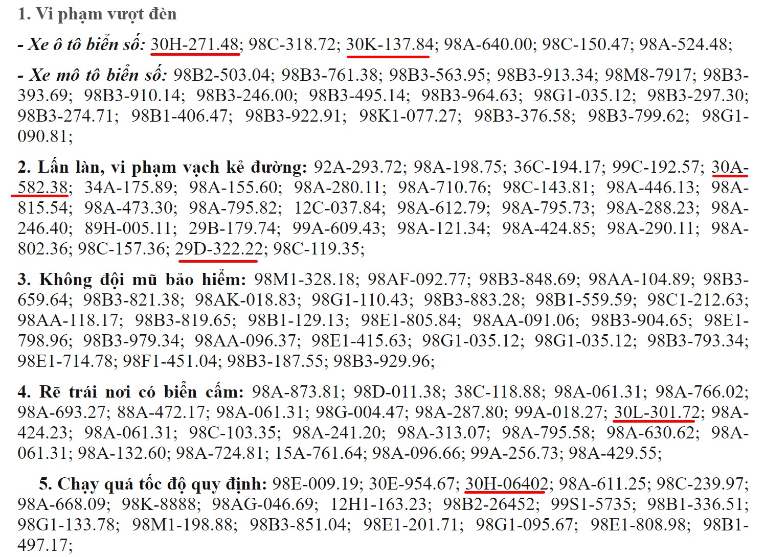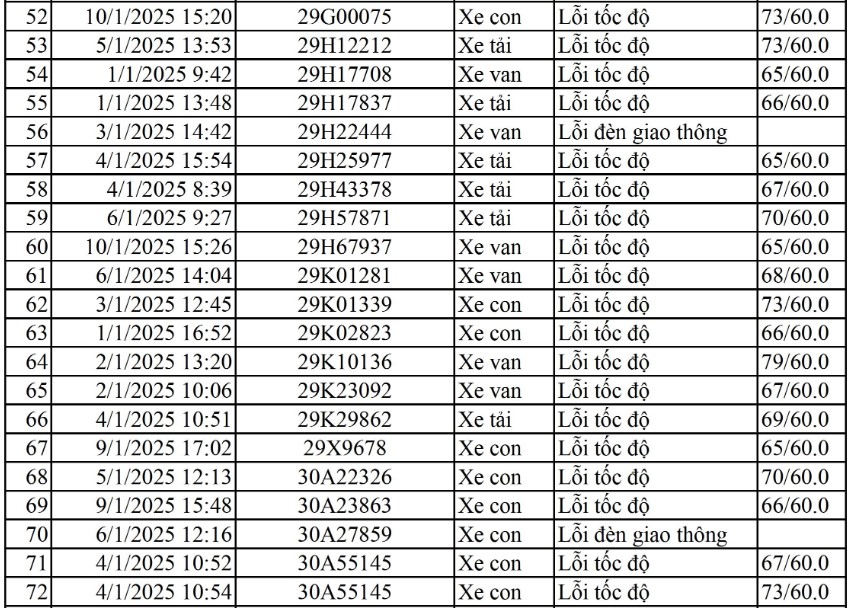 Phòng Cảnh sát giao thông, Công an tỉnh Thái Bình đã công khai 69 trường hợp bị phạt nguội từ ngày 15/01/2025 đến ngày 22/01/2025, trong đó có nhiều xe biển số thành phố Hà Nội vi phạm lỗi vượt quá tốc độ.