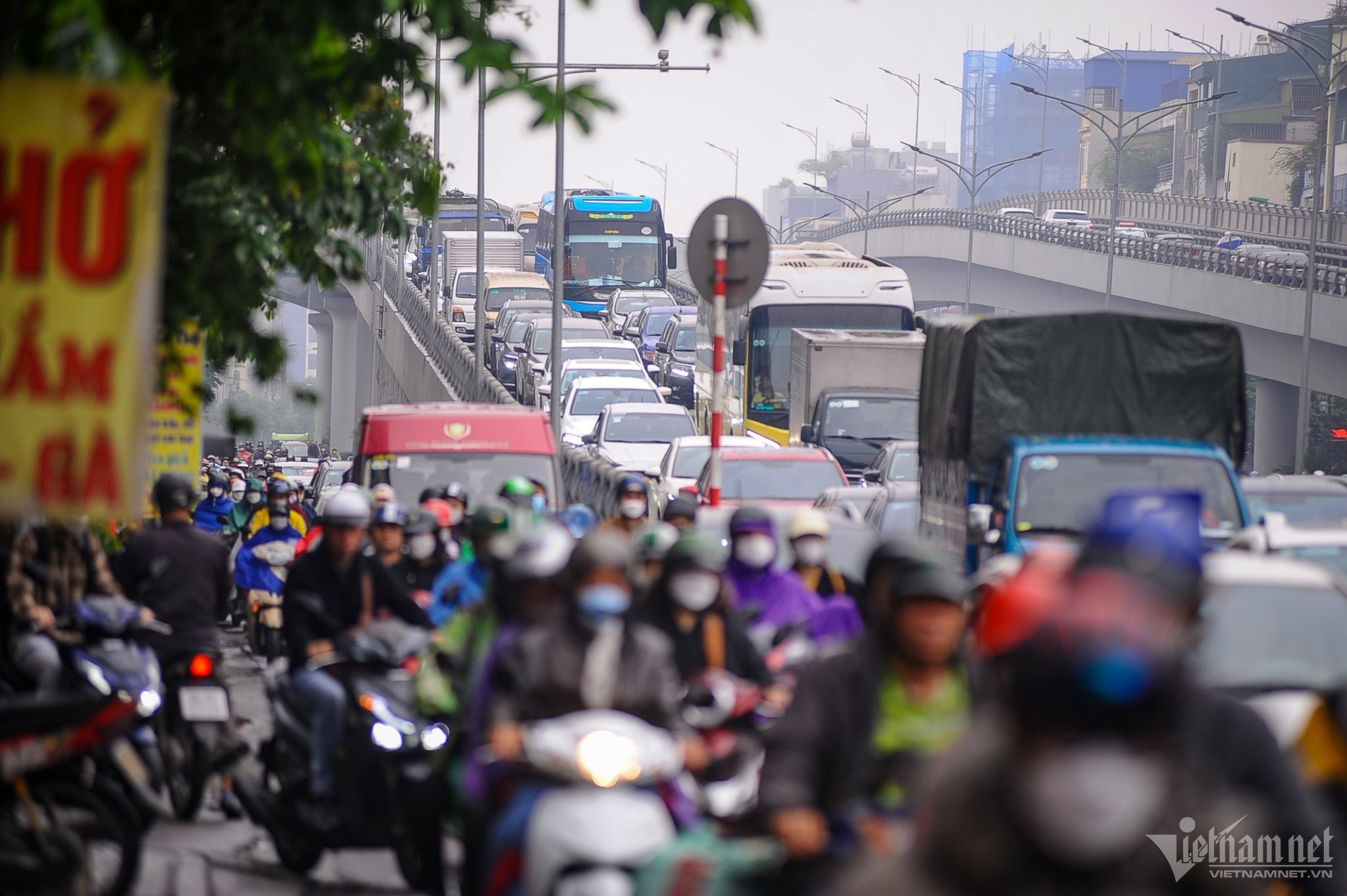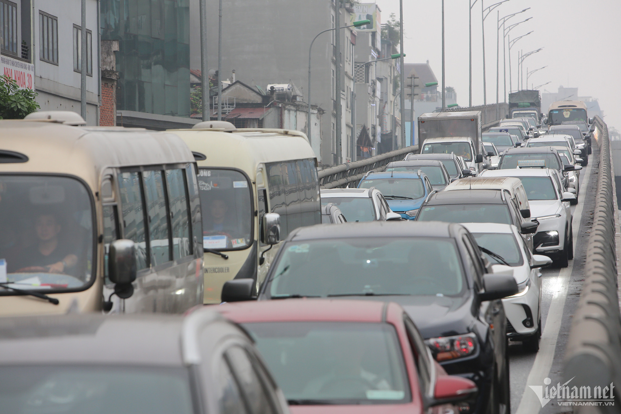 Sáng 11/4, các tuyến đường cửa ngõ tiến vào trung tâm thủ đô như Xuân Thủy, Phạm Hùng, Trường Chinh bị ùn tắc nghiêm trọng. Nhiều người đi từ nhà đến nơi làm việc bị trễ giờ.